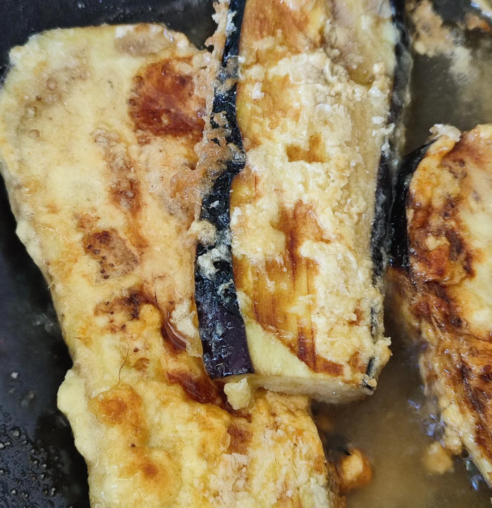 Ingrédients : Aubergines & tomates bio (35 – Montreuil le Gast), farce d’agneau, oignon, lait amande, farine maïs, beurre, huile d’olive, ail, cumin, cannelle, aromates, sel & poivre.